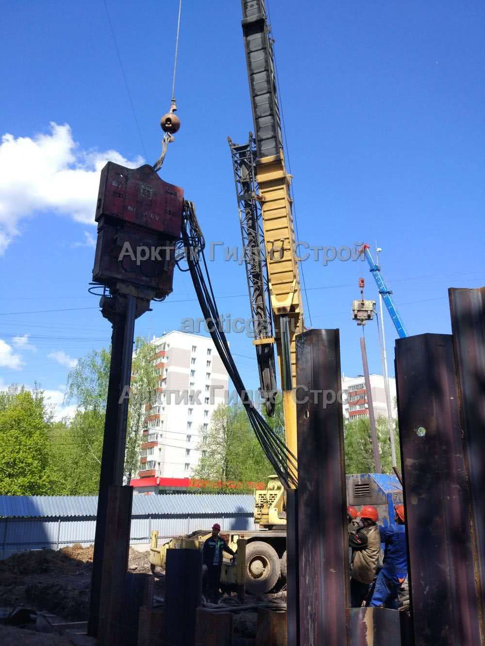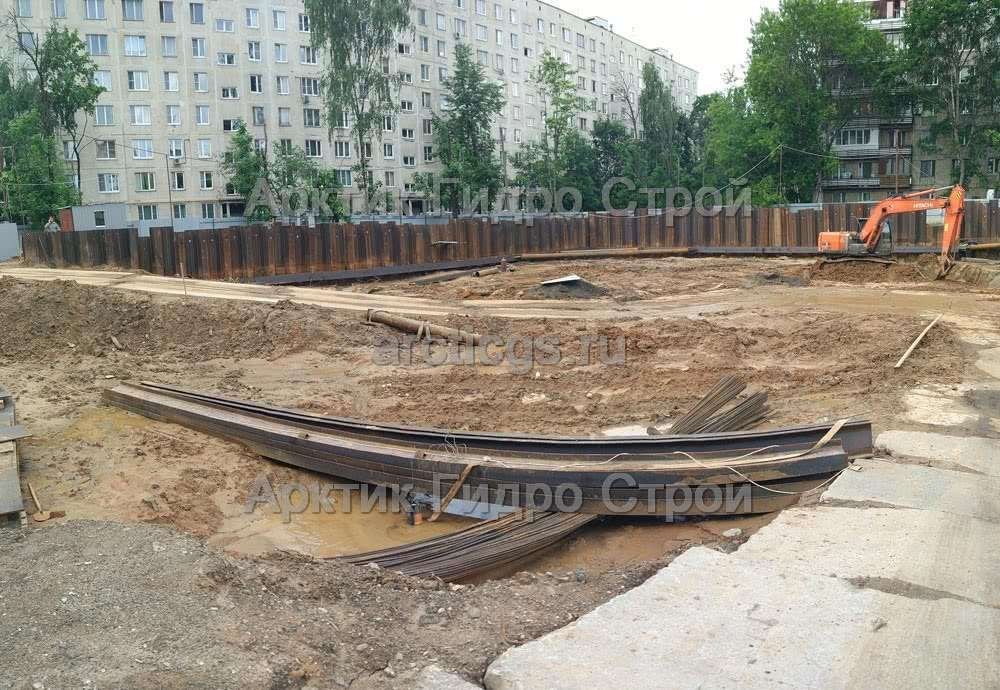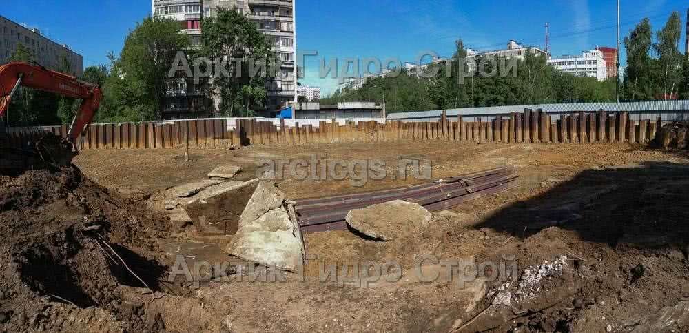 Устройство шпунтового ограждения из шпунта Ларсена методом вибропогружения на объекте строительства административного здания в г. Москва, ул. Байкальская, 42.