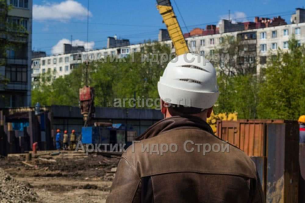 Устройство ограждения из шпунта Ларсена методом вибропогружения на объекте строительства административного здания