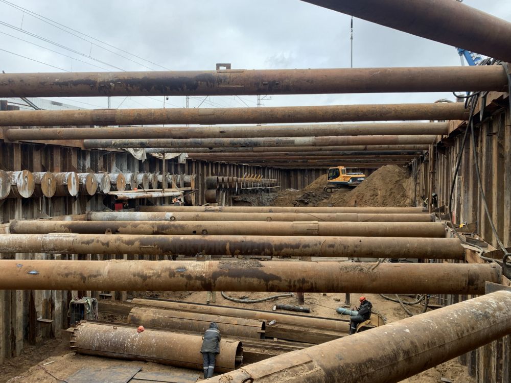 Шпунтовое ограждение котлована из шпунта Ларсена с распорами, выполненное специалистами «АрктикГидроСтрой»