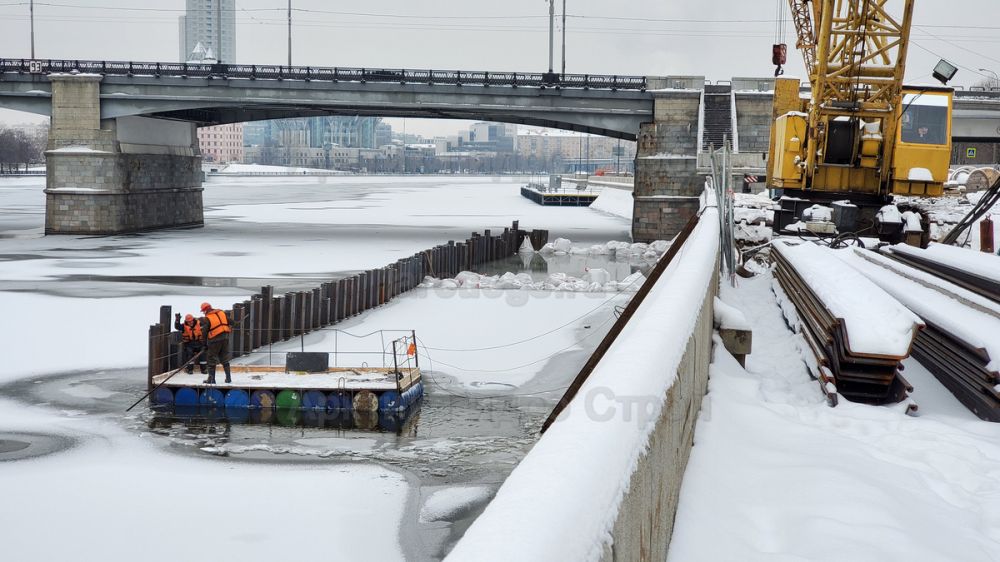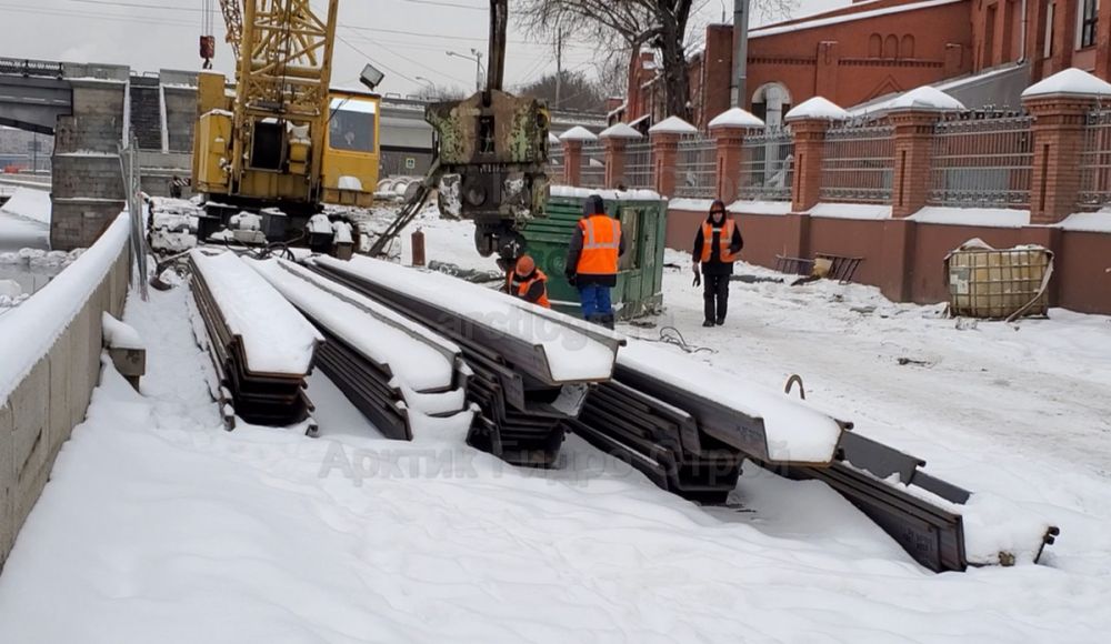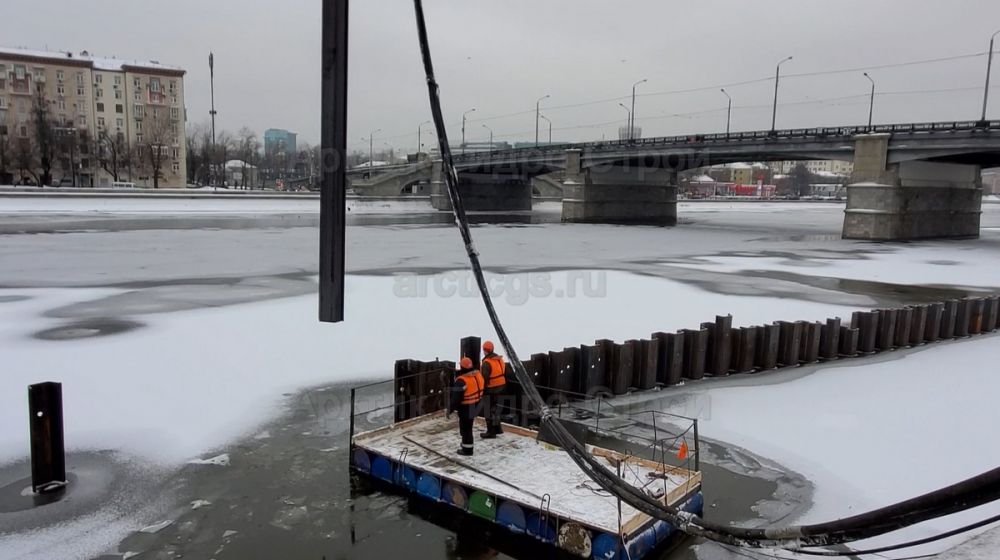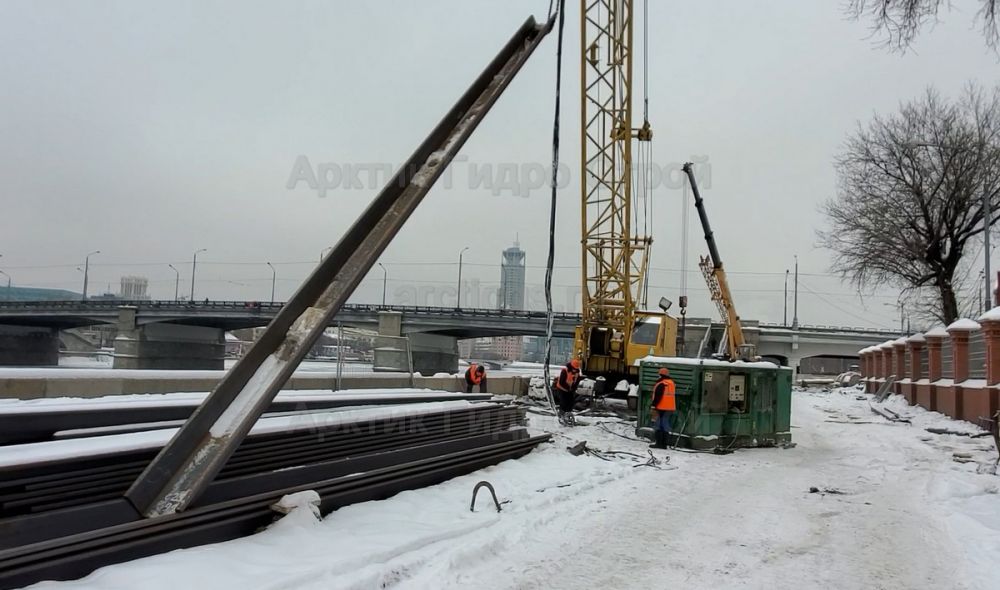 Вибропогружение шпунта Л5-УМ при строительстве искусственного сооружения в русле реки Москвы