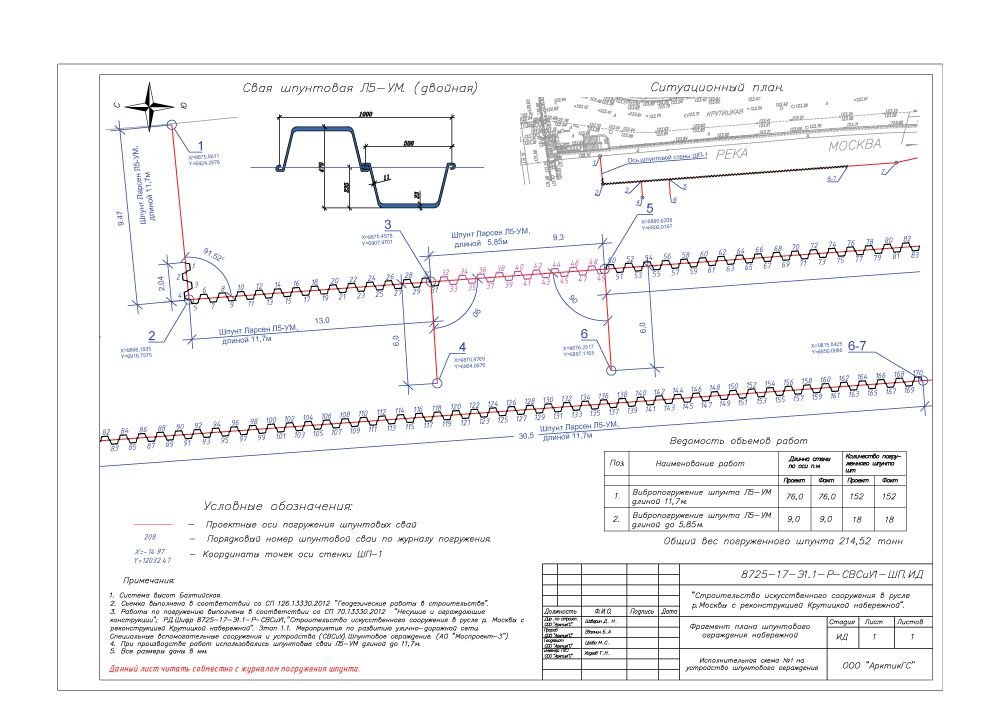 Поставка шпунта Л5-УМ, поставка и производство сварной конструкции БШС до длины 17м. Вибропогружение, с последующим извлечением с помощью высокочастотных вибропогружателей ICE 1423C и Muller 50 HHF на объекте строительства искусственного сооружения в русле р. Москвы с реконструкцией Крутицкой набережной»