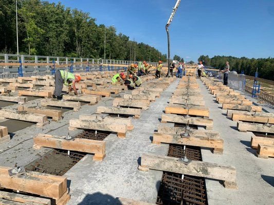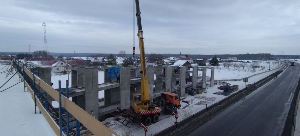 - Возведение мостовых опор и сооружение монолитных преднапряженных пролётных строений