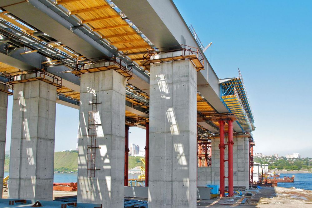• Возведение мостовых опор и сооружение монолитных преднапряженных пролётных строений