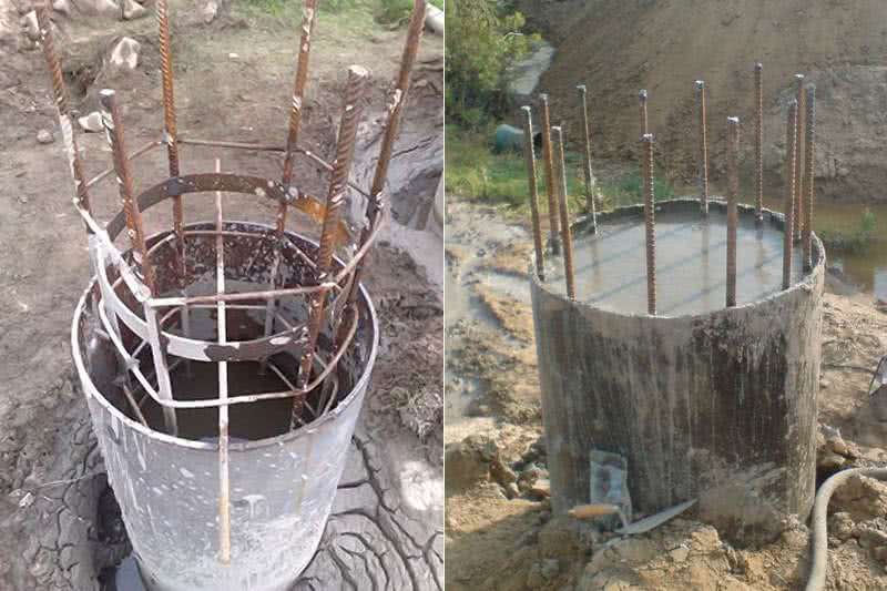 На рыхлых грунтах для формирования ствола сваи используются обсадные трубы. Они помещаются в скважины в процессе бурения – так получается избежать обрушения стенок скважины и проникновения в ствол грунтовых вод. После заливки бетона труба может быть извлечена или оставлена в грунте. Во втором случае она служит усилению фундамента.