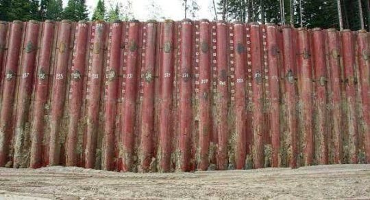 Такое ограждение применяется для того, чтобы защитить стены вырытого котлована от осыпания и обрушения, которое ему грозит вследствие проведения работ по забиванию свай.